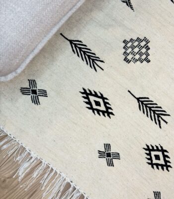 Nos tapis marocains sont conçus dans le respect des techniques traditionnelles, utilisant des matières premières de haute qualité comme le coton, la laine ou un mélange des deux. Chaque pièce est entièrement tissée à la main, ce qui la rend unique et légèrement différente des autres. De petites imperfections peuvent apparaître au fil du tissage, preuve de l’authenticité et du savoir-faire artisanal transmis de génération en génération.